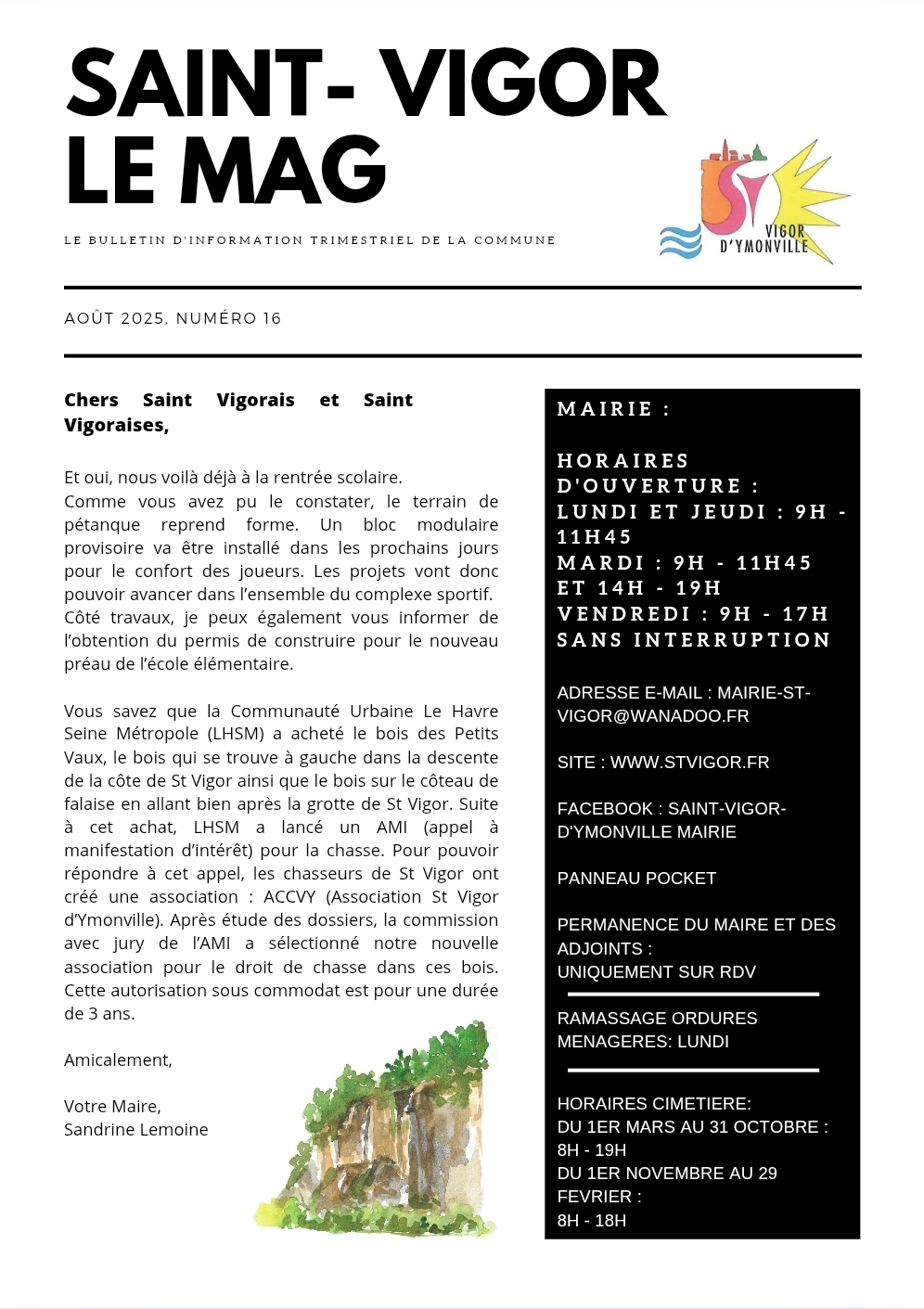 © stvigor Magazine municipal Saint-Vigor Le Mag n°16 Voici le numéro 6 du magazine trimestriel. 1 document Publié le 28 janvier 2021 le_mag_ndeg16_-_aout_2025_2.pdf PDF-2.51 Mo Télécharger Precedent Retour à la liste Suivant